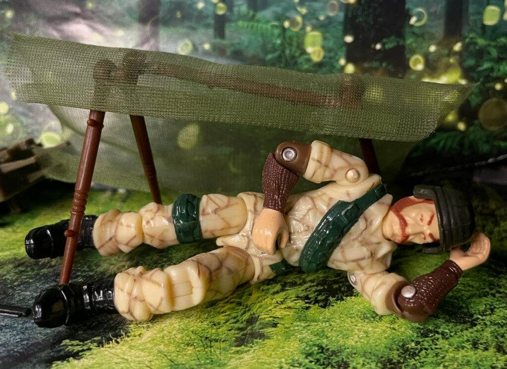The figure came with a rifle and pistol along with a camo poncho and a tent he could carry for those long missions out in the bush. There were even instructions on how to set up the tent behind the figure on his card. He has a unique look and I think that added to the popularity of the character. I love the textured forearms and it just adds even more depth to this figure. This has always been one of my favorites and I’m happy I still have mine from my childhood.