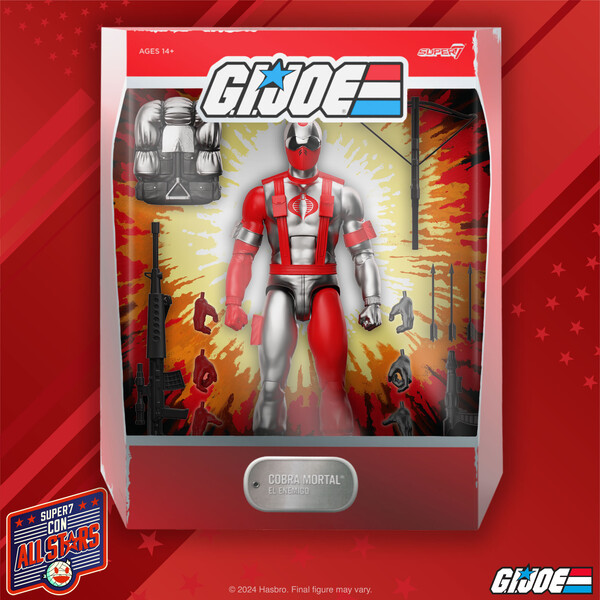 Available at Comic-Con! This 7” scale, highly articulated, Comic-Con 2024 debut G.I. Joe ULTIMATES! figure of Cobra Mortal is inspired by the vintage Argentine market toy and depicts the on-again, off-again Cobra assassin in his bright red-and-silver uniform. Available exclusively to Comic-Con attendees at Super7 Booth 2543 from July 24th – 28th, 2024, with limited quantities available to all fans on Super7.com on Monday, July 29th. #Super7 #GiJoe