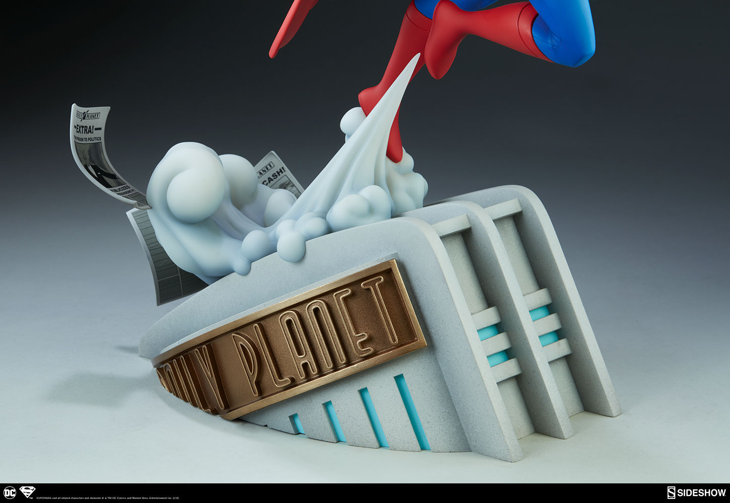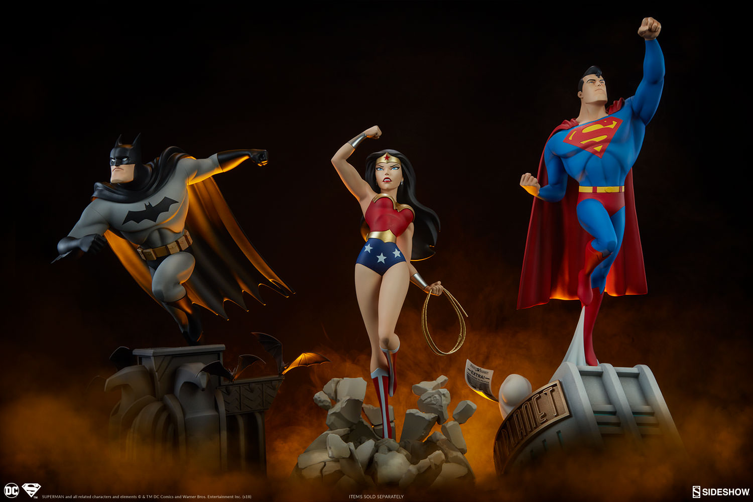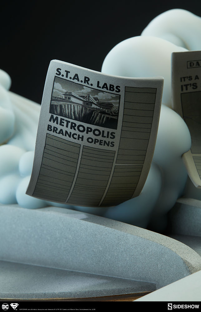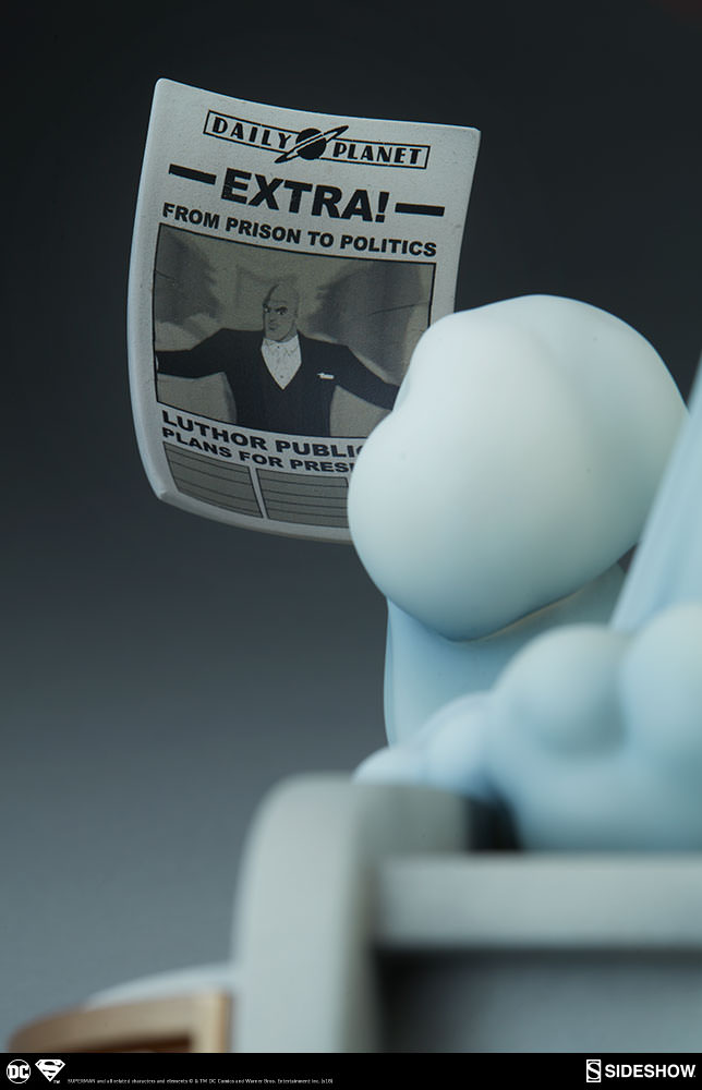 Inspired by Superman’s various animated appearances, this stylized and action-packed statue captures the bright colors and dynamic heroism of everyone’s favorite Last Son of Krypton. The Superman Statue measures 20” tall, as the Man of Steel takes flight off the roof of the Daily Planet building. Three newspapers are caught in the gust of wind, each with headlines hiding references to other moments from the DC animated universe- see what you can spot!