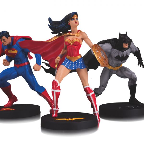 DC’s Trinity is shown prepped for battle in this beautifully detailed 3-pack statue set from iconic DC artist Jim Lee. Part of the DC DESIGNER SERIES, Superman, Batman and Wonder Woman all stand with one foot on their bases sporting their respective iconic symbols. Each statue measures approximately 7″ and is limited to 5,000 pieces.