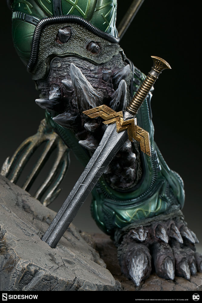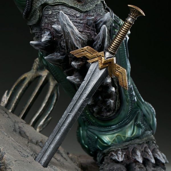 Measuring a monstrous 26.5” tall, the Doomsday Maquette is the ultimate fearsome foe, created from the violence of prehistoric Krypton. Doomsday stands astride a rubble environment base littered with relics from the valiant heroes who have fallen in his wake.