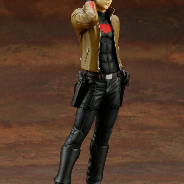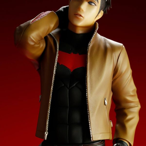 Jason Todd has always been a rebel, and here he stands in a defiant pose just begging you to look at him. As Red Hood he wears a super cool (and intricately sculpted) costume with black boots, reinforced black trousers, an armored black shirt decorated with a red bat logo, and a brown leather jacket with red accents and silver zippers. Of course, he wouldn’t be in the Ikemen style unless his pose and outfit highlighted Jason’s slim but muscular physique, and as Red Hood stands with one leg extended and one hand behind his head he shows off his toned body. The dark hero comes with interchangeable heads so you can customize your display: a full Red Hood helmet, a bare head revealing an aloof expression on his face and his black hair with a white streak, and exclusive to this first edition a bonus head wearing a sleek red domino mask! Sculpted by the talented Naoya Muto, Red Hood stands in 1/7 scale. Add this handsome hero to your collection and be on the lookout for more upcoming Ikemen Statues from Kotobukiya like Red Robin!