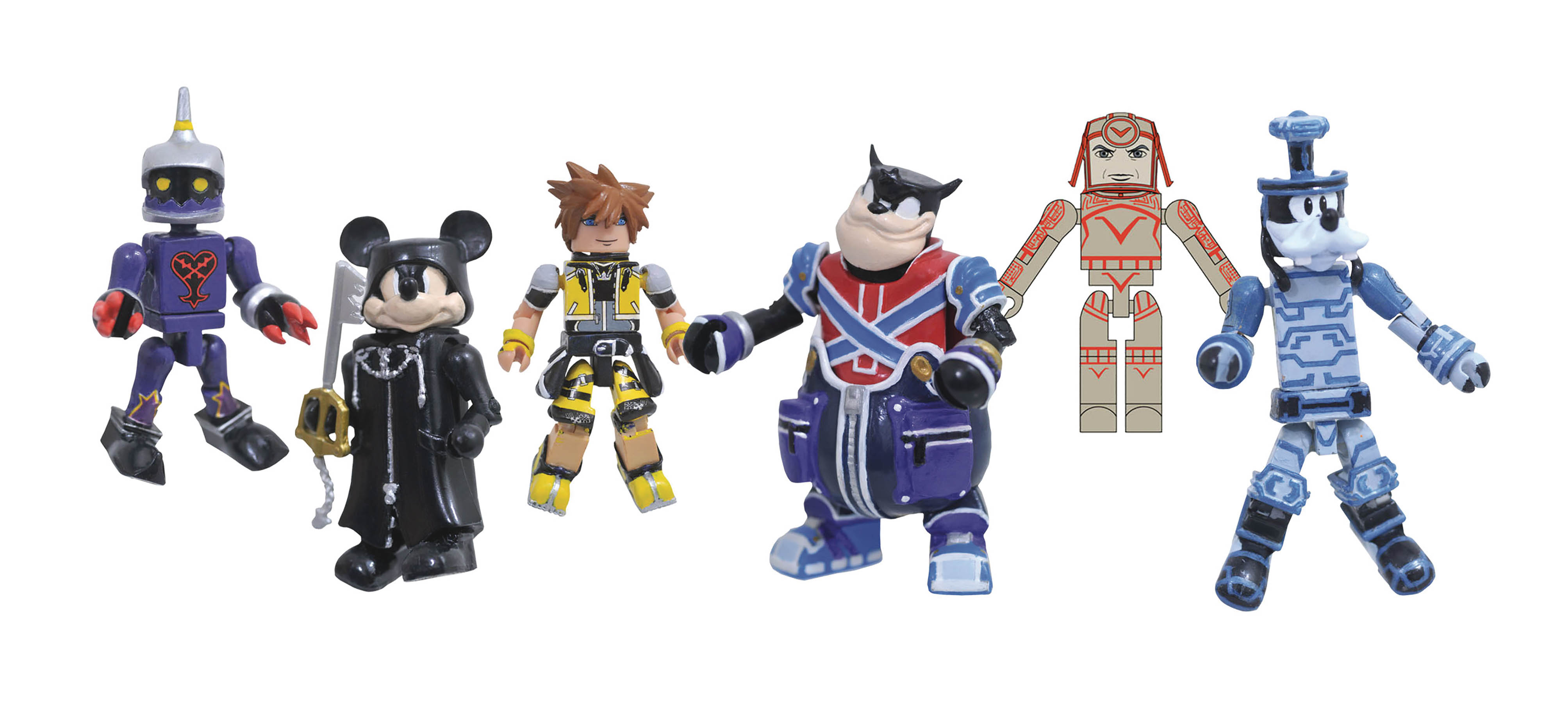 Minimates mini-figures are diving back into the world of Kingdom Hearts, and Series 2 spotlights more of Disney and Square Enix’s biggest stars from the second Kingdom Hearts game! The series includes two-packs of Organization 13 Mickey with a Soldier, Master Form Sora with Pete, and an exclusive 2-pack of Space Paranoids Goofy with the villainous Sark! Each Minimates mini-figure features up to 14 points of articulation and fully interchangeable parts and accessories. Designed by Barry Bradfield. A Diamond Select Toys release!