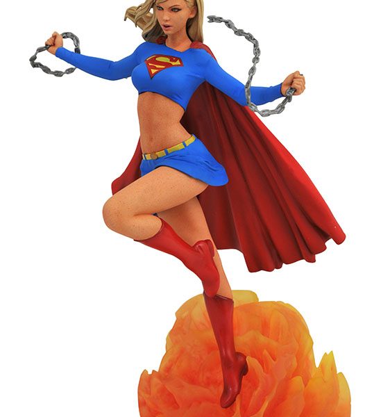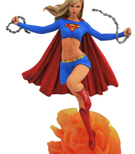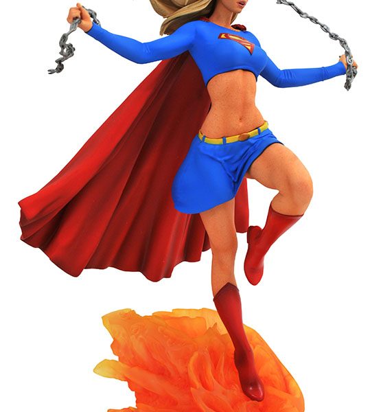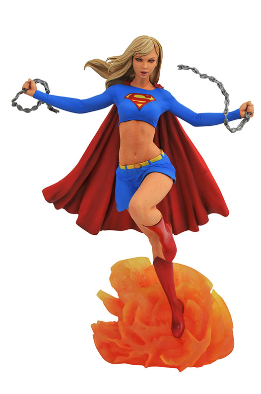 How super is your Gallery? The Girl of Steel breaks into the DC Gallery line of PVC dioramas with this dynamic new sculpture of Kara Zor-El! Shattering a set of chains, Supergirl flies out of an explosion and onto your shelf in a 10-inch diorama by James Marsano based on a design by Caesar. This sculpture features detailed paint applications and comes packaged in a full-color window box.