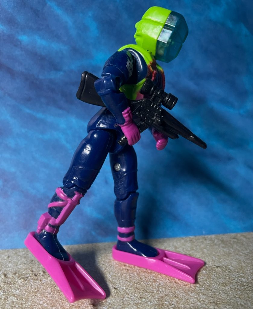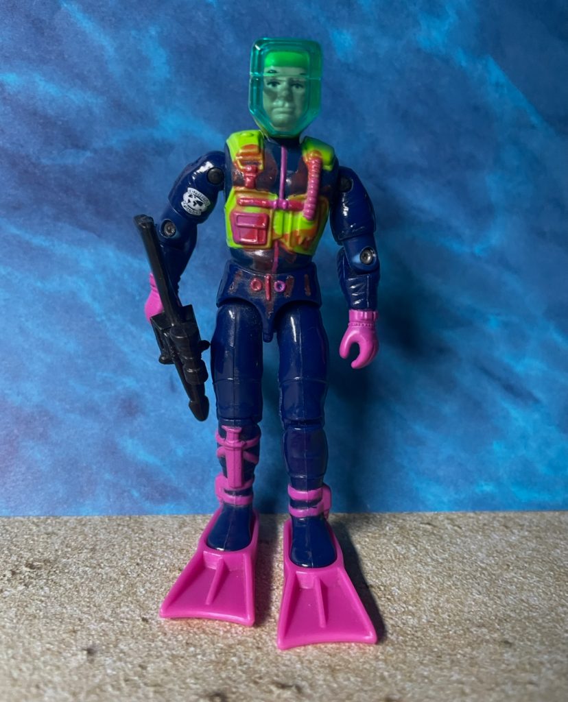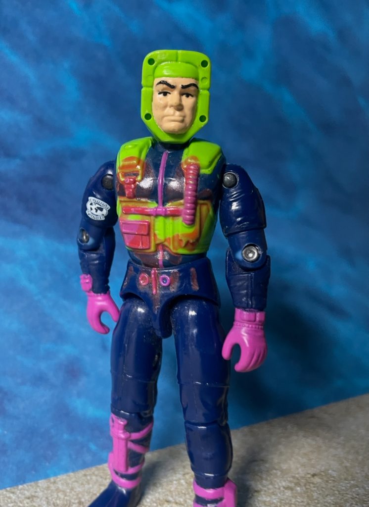 Welcome to The Outpost. Today I’m taking a look at 1992 Deep Six. Deep six V1 was one of those figures I think kids loved him or hated him. I never had him as a kid but he was a cool figure and I would have loved him. V2 Deep Six I did have as a kid and he was really cool and I have a whole team of deep sea divers now. V3 Eco Warrior Deep Six is an interesting figure with some 1992 wild colors tossed in. It was just a sign of the times though, the color that is. Everything at least in the US was testing wild colors. Our clothes, our cars, and even our Joes.