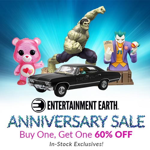 Entertainment Earth turns 22 and you win! For a limited time only, buy one, get one 60% off in-stock Entertainment Earth Exclusives you can’t buy anywhere else. Choose from comic con exclusives and other one-of-a-kind items from Hasbro, Transformers, Star Wars, and beyond. Even Funko Pop! Vinyl figures. Save now during our Anniversary Sale!