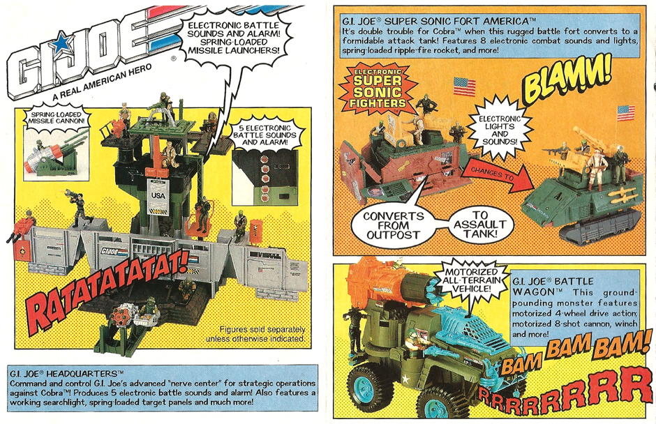 The Earthquake is a large vehicle. It is a pretty simple bucket loader. I have one and it is cool looking, but I think they needed to make a dump truck to go with it. Fort America is a cool vehicle. I know a lot of kids had this and not the Headquarters so this is a really cool vehicle/fort for the Joes. The Desert Apache is one I did a full write up on and this is a really cool helicopter. Someday I want to hunt this one down. There was also a mail away APC this year, what else do I need to say about this one? Where were you in 1992? Which 1992 vehicle is your favorite? Where does 1992 rank over all in 1982-1994 vehicles? Sound off below and let us know AFTER THE JUMP! Make sure to check back for our next discussion.