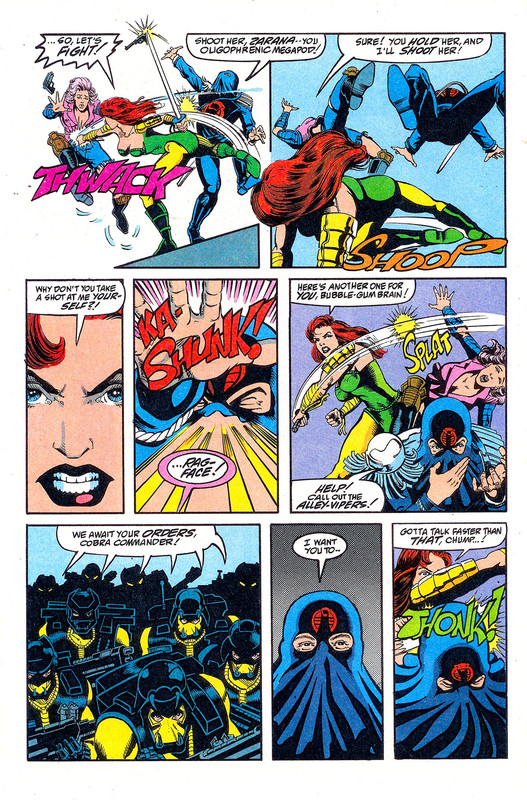In a last minute moment of honor, Megatron is impressed by the bravery of Dr. Biggles Jones and decides that while he still intends to take her to Cybertron to work for him, he will not “core and freeze” her after all. In the end the Joes ponder if they did the right thing by letting her go.
