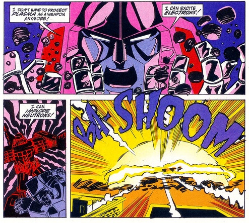 Meanwhile Megatron ignites a nuclear blast that calls a halt to the festivities. As Megatron kills a few Autobots, a few also sneak onboard his ship as spy’s. Setting up the upcoming Transformers Generation 2 Comic Book Series.