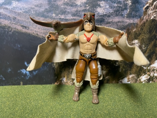 Welcome to the Outpost. Today I’m taking a look at an under appreciated G.I. Joe Cobra figure that I had as a kid and I thought he was really cool, the 1987 Raptor. I always loved the uniqueness of the characters especially in the later eighties. One of the most distinct features of Raptor is that big honking nose. I love the design of his outfit especially his cape. I always assumed he could fly with his cape but I’m not sure now, I think this is just cosmetic. It would have been a cool feature to fly, I guess in my world he can use his cape to fly.