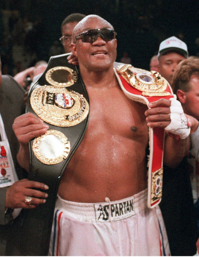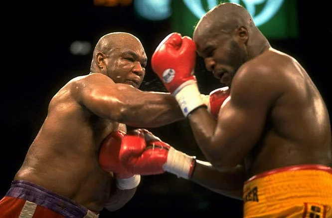 By 1973, he earned a shot at the heavyweight title against Joe Frazier, the reigning champion known for his toughness and relentless pressure. In a stunning display of power, Foreman knocked Frazier down six times in just two rounds before the fight was stopped. The iconic call of “Down goes Frazier! Down goes Frazier!” by Howard Cosell remains one of the most famous moments in boxing history. With this victory, Foreman became the heavyweight champion of the world. Foreman successfully defended his title twice before facing Muhammad Ali in the legendary 1974 “Rumble in the Jungle”. In 1987, after ten years away from the sport, Foreman shocked the boxing world by announcing his return. Initially dismissed as a publicity stunt, Foreman, gradually proved his doubters wrong. Despite his age, he retained his incredible punching power and adjusted his style to be more patient and strategic.