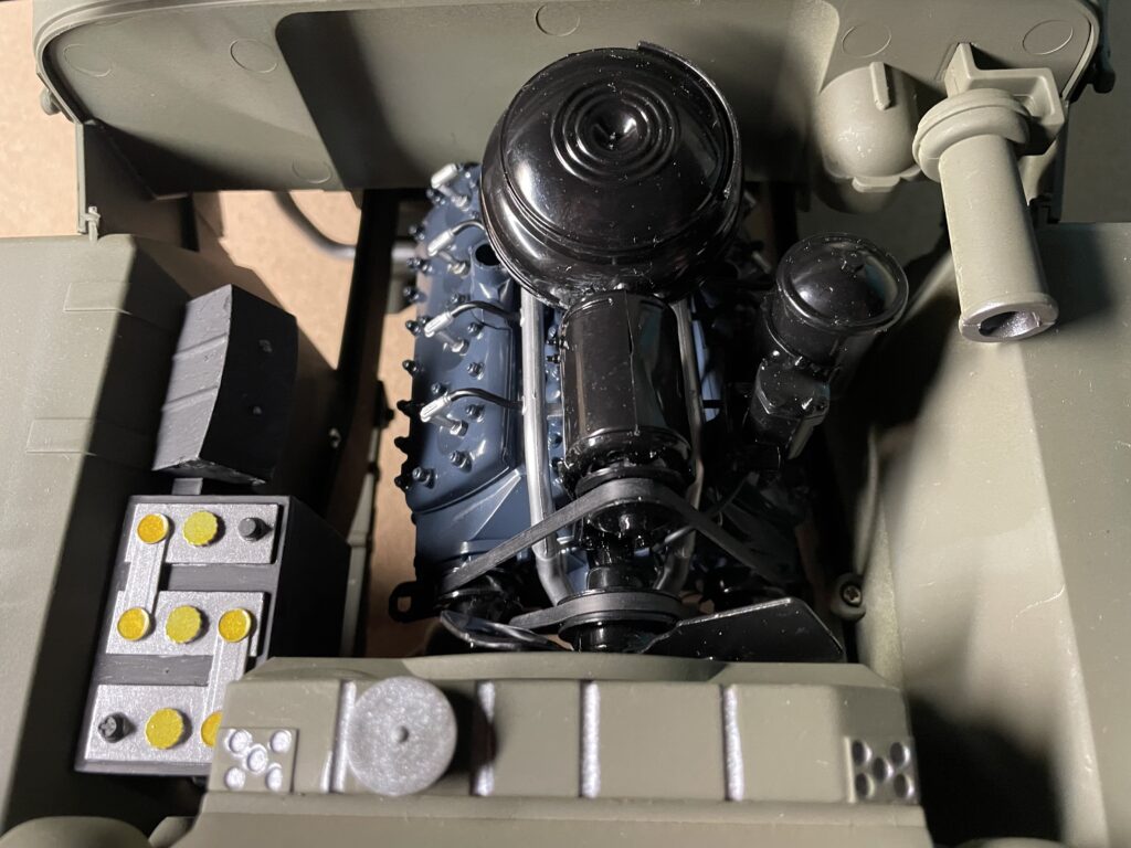 There are many moving parts like the hood, windshield, and several small latches. This did not come with an engine and I didn’t like that it had a big open hole so, I found an engine model kit and dropped it in there. I added my college Fraternity letters to the front bumper to make this kit unique to me. It’s a great vehicle and I hope to someday own a real one just to put around town in. Make sure to check back for our next discussion.