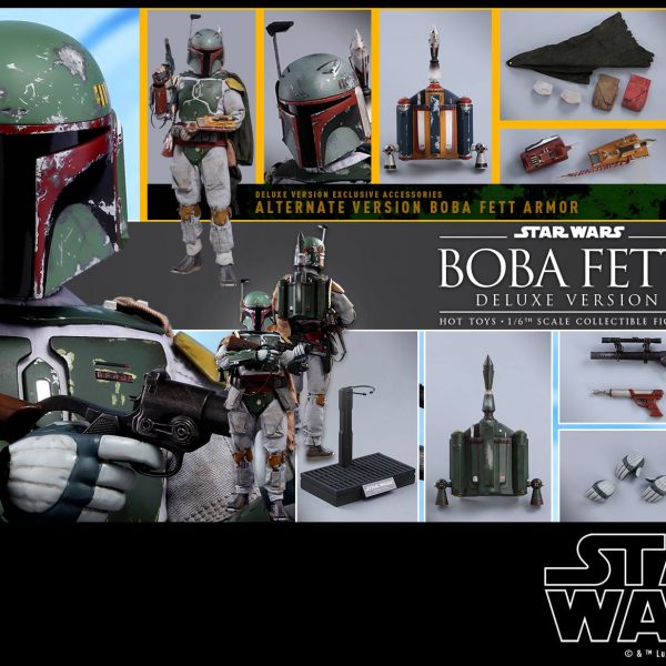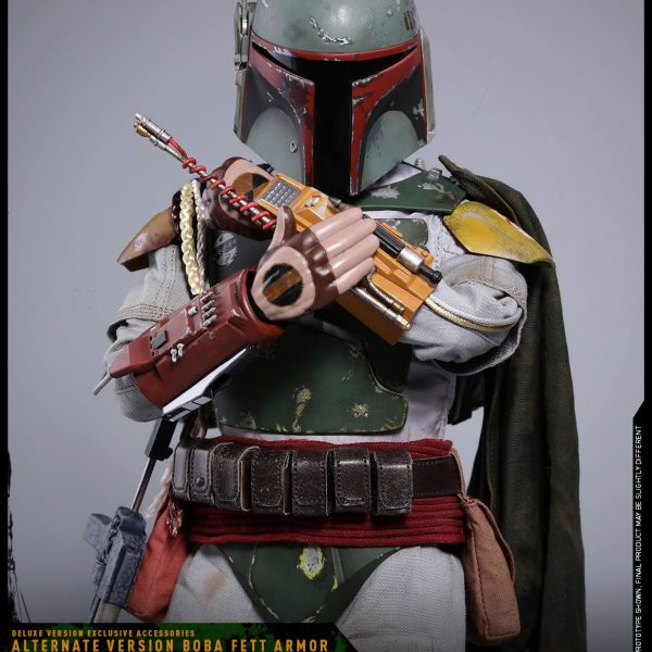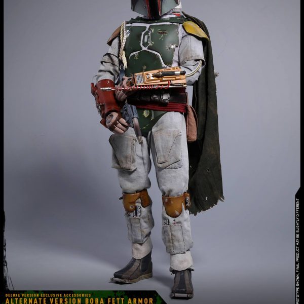 The biggest highlight of this Deluxe Version is none other than the fact that Boba Fett’s Alternate Version armor based on his “movie pre-production” look is realized for the first time on a 1/6th scale collectible figure and exclusively include a range of interchangeable parts such as helmet, jetpack, gauntlets, cape, and a number of gloved hands for fans to display this infamous bounty hunter’s stylistic look before his official appearance in Star Wars: The Episode V The Empire Strikes Back!