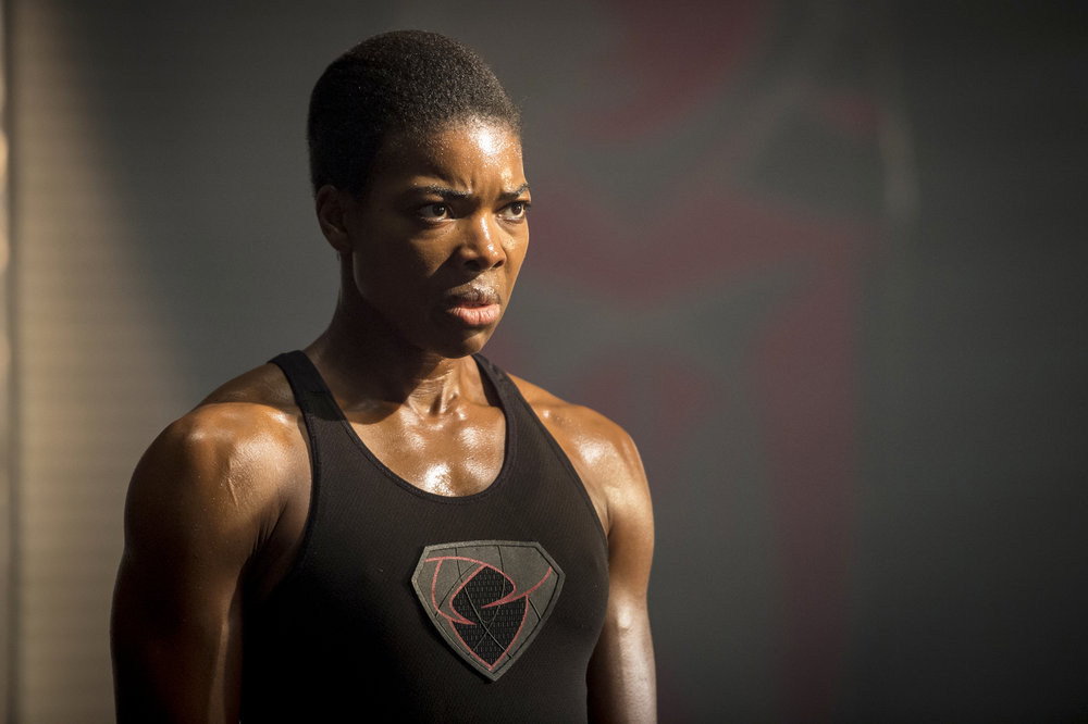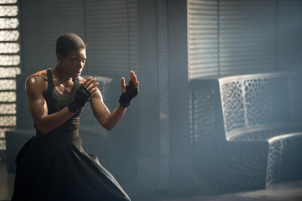KRYPTON — “House of Zod” Episode 105 — Pictured: (l-r) Ann Ogbomo as Alura, Faisal Mohammed as Sagatari Trainer — (Photo by: Steffan Hill/Syfy)