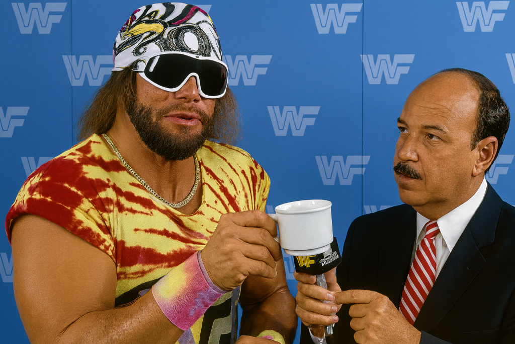 By 1985, Randy Savage signed with the World Wrestling Federation (WWF), and the Macho Man truly exploded onto the scene. Paired with his real-life wife “Miss Elizabeth” as his manager, he created one of wrestling’s most beloved — and sometimes heartbreaking — storylines. His flashy robes, oversized sunglasses, and raspy, unpredictable promos made him a standout in an era already filled with big personalities.