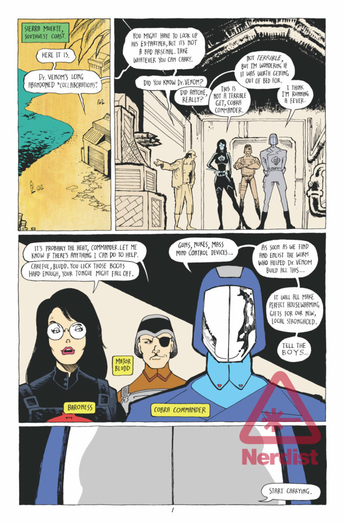 “Love and loss, combat and cunning, cheap laughs and high stakes – this is everything I want in a G.I. Joe comic,” said Fiffe, proving that he gets it. The Joes and Cobras may battle for the fate of the world, but it’s always a mistake to take them too seriously. We are in a world where an evil military force employs bikers obsessed with grape soda, after all.