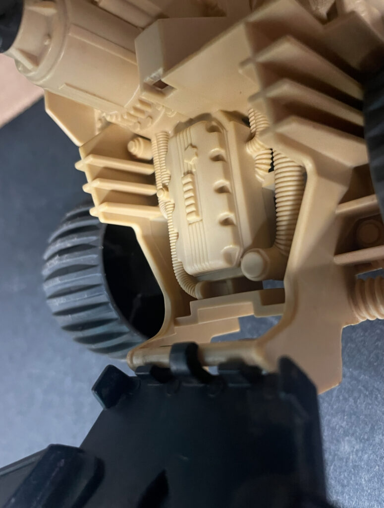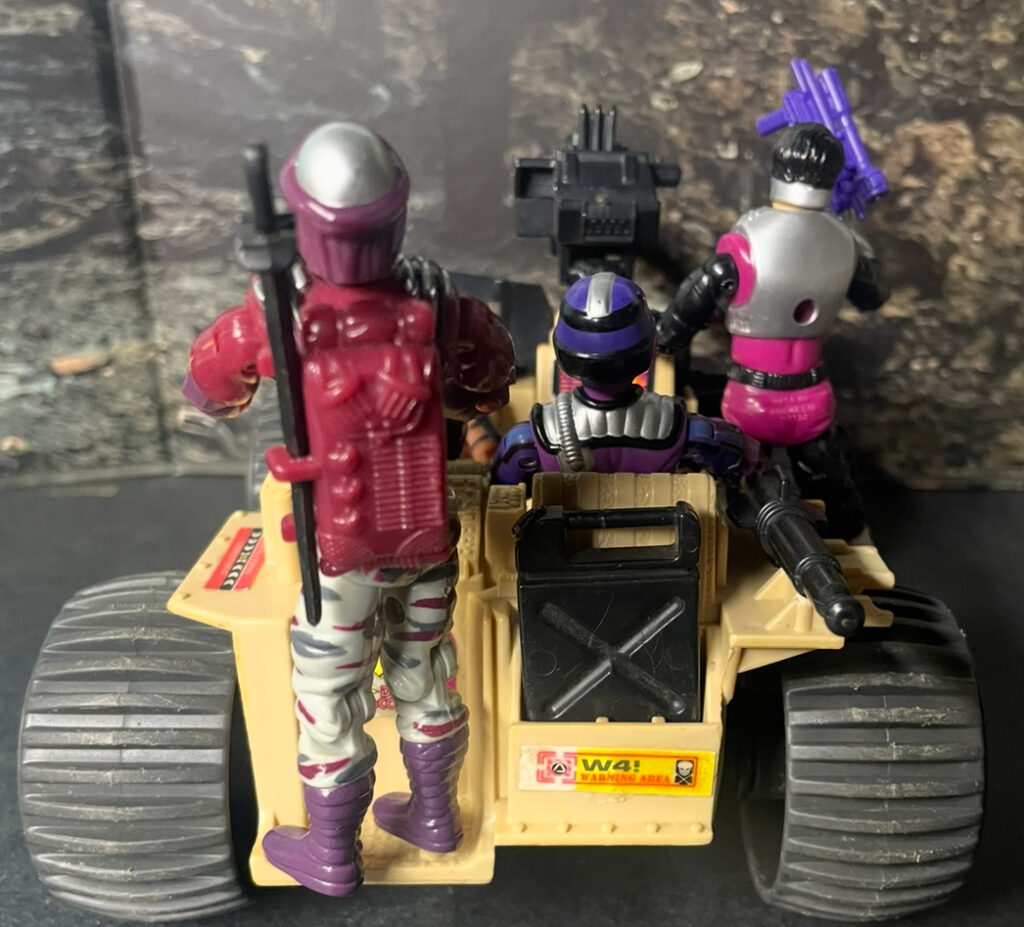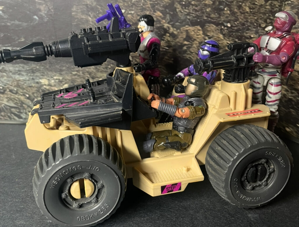 There was a vast sea of Joe fans just like me. We connected with each other on our passion and our appreciation for our childhood and for the tremendous workmanship that went into so many Joes and vehicles. Even though the original toy line was a thing of the past there were still some great figures and vehicles being produced along with some really cheap ones. The 1994 Scorpion is one of those vehicles that’s really cool, and kind of fell into the crack. It’s a 2 seater with room for 3 to stand. The hood lifts up and reveals a pretty nicely detailed engine.