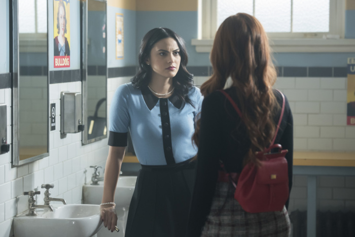 Riverdale — “Chapter Thirty-Five: Brave New World” — Image Number: RVD222b_0011.jpg — Pictured (L-R): Camila Mendes as Veronica and Madelaine Petsch as Cheryl — Photo: Dean Buscher/The CW — é 2018 The CW Network, LLC. All rights reserved.