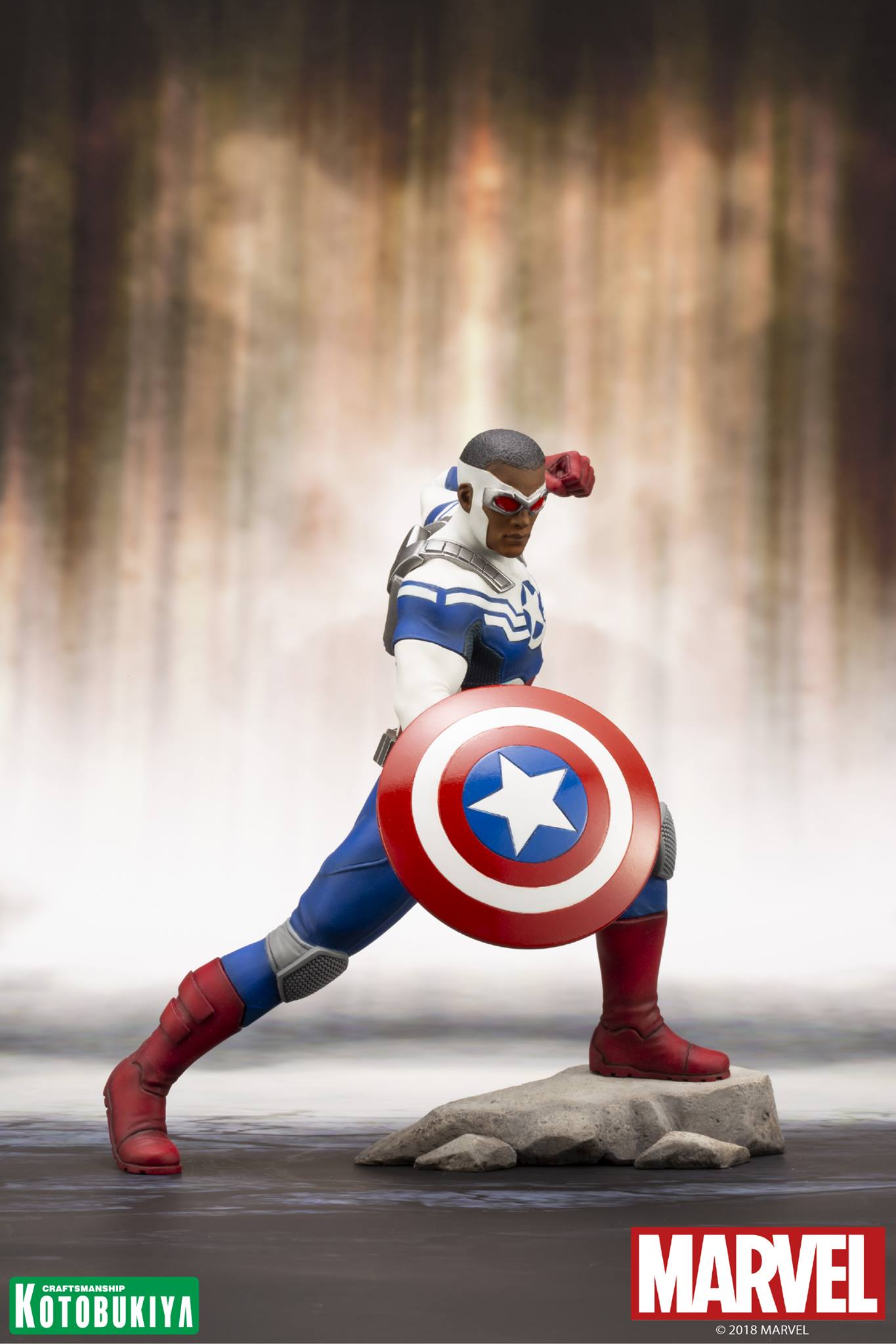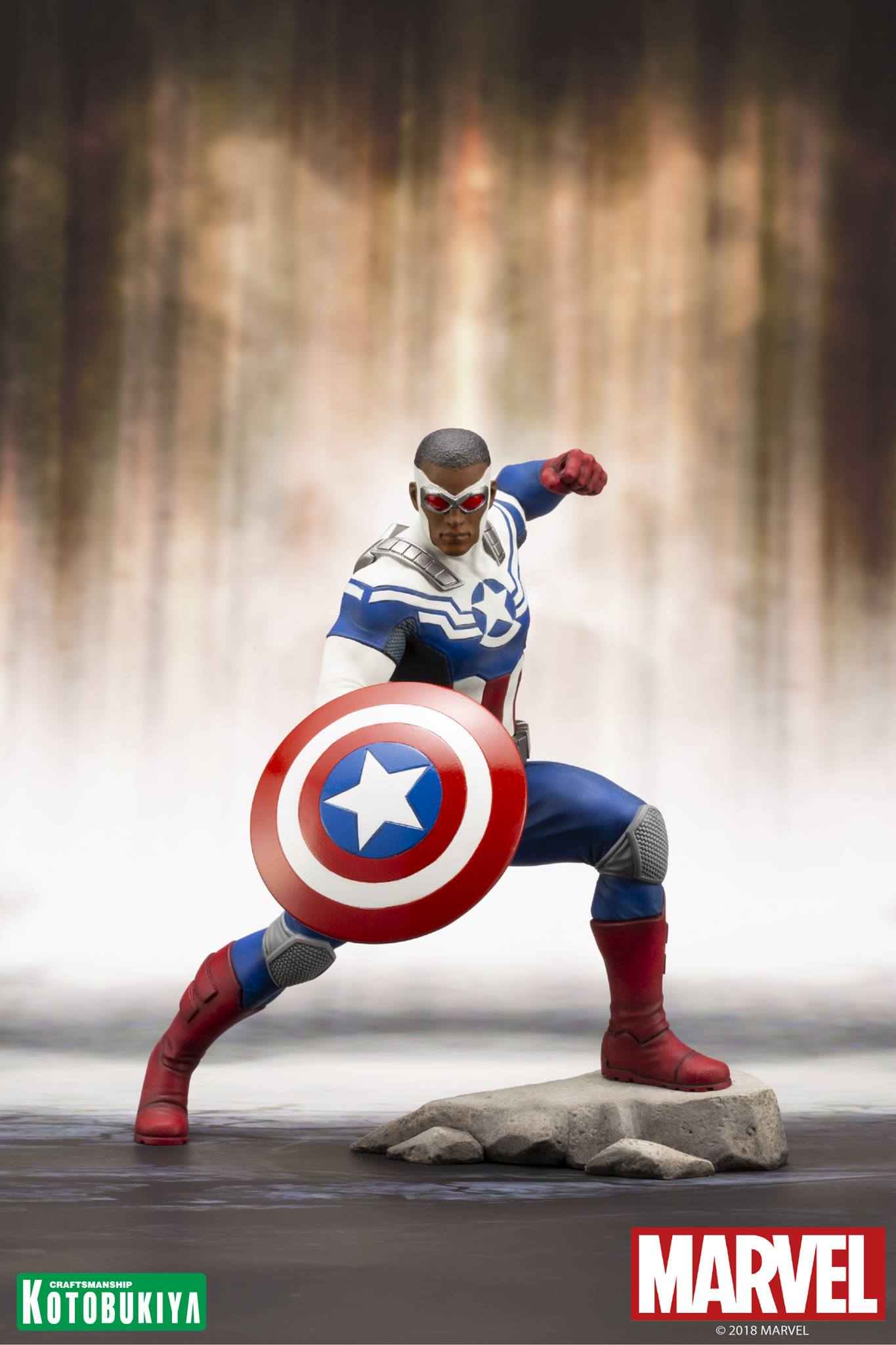 Kotobukiya has released the first promo images for their stunning new Sam Wilson Captain America ARTFX+ Statue. Cap is 1/10 scale statue that will stand roughly 7″ tall. Check out the photos below and let us know what you think AFTER THE JUMP! Price and Release dates have not been set!