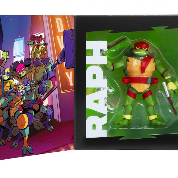 The individually sculpted figures come in a protective “fifth panel window box” that will be placed in a 2018 San Diego Comic-Con box that features each Turtle’s name. The figures range in height from 4.25 inches for Michelangelo, to 4.75 inches for Raphael, with Donatello and Leonardo each standing at 4.5 inches tall. Each figure has 13 points of articulation and not only includes their new core weapon accessories, but also features additional decoration, details and accessories.