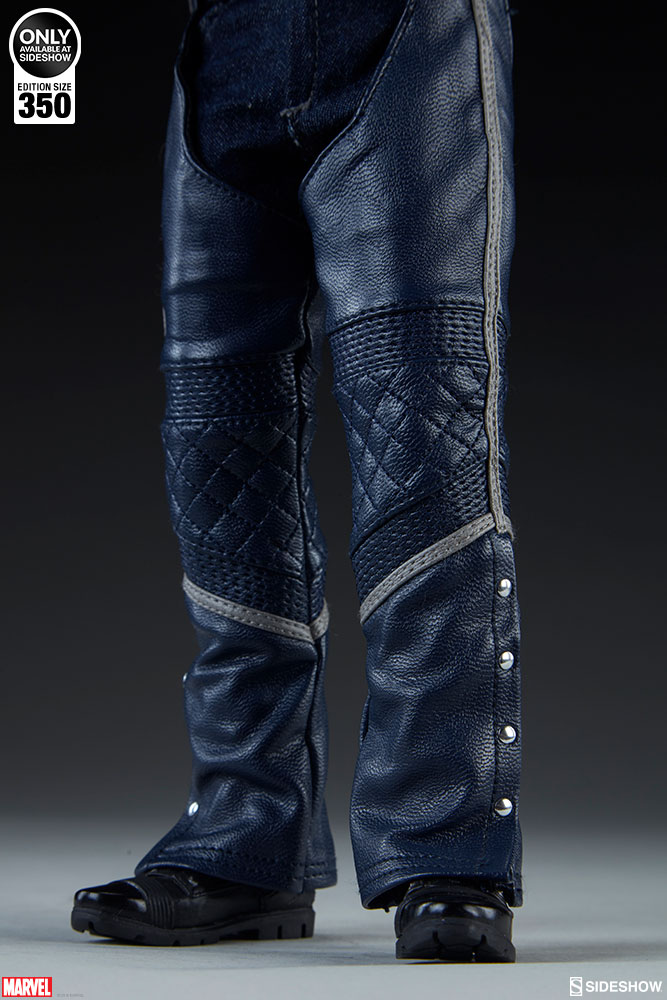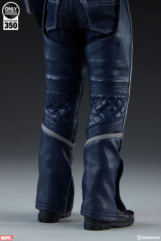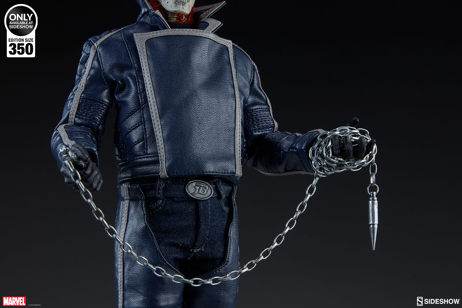 The Ghost Rider Classic Sixth Scale Figure also features a highly-detailed fabric costume, which includes a blue leather-like jacket with a removable jacket bib, and blue leather-like chaps. His biker costume also features tailored t-shirt and denim jeans, with a “JB” belt buckle. Each piece is stitched with incredible details, capturing the devilish style of this supernatural superhero.