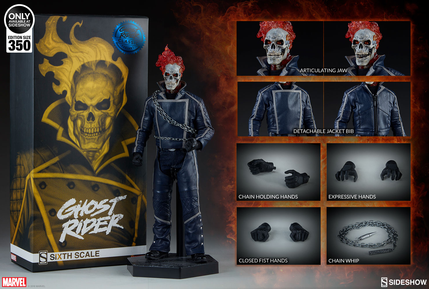 Sideshow Collectibles is doing a limited released of their stunning Limited Edition Ghost Rider Classic Sixth Scale figure. Limited to 350 pieces the item is available beginning today between 9am and noon at the link below. Ghost Rider will include interchangeable hands, a chain, an adjustable jacket, and a figure stand. Check out more details and images of this offering below and let us know if you will be picking one up AFTER THE JUMP!