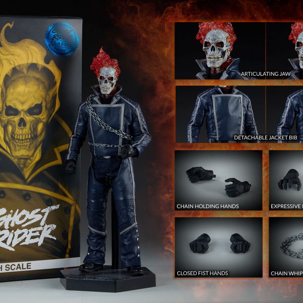 Sideshow Collectibles is doing a limited released of their stunning Limited Edition Ghost Rider Classic Sixth Scale figure. Limited to 350 pieces the item is available beginning today between 9am and noon at the link below. Ghost Rider will include interchangeable hands, a chain, an adjustable jacket, and a figure stand. Check out more details and images of this offering below and let us know if you will be picking one up AFTER THE JUMP!