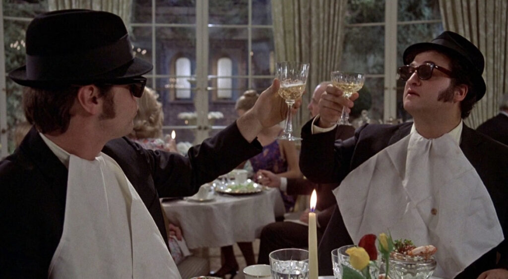 “Jake Blues, just out from prison, puts together his old band to save the Catholic home where he and his brother Elwood were raised. On a ‘mission from God,’ the brothers hit the road in their battered Bluesmobile, dodging the police, neo-Nazis, angry country bands, and more — all while delivering unforgettable musical performances from legends like Aretha Franklin, James Brown, and Ray Charles.”