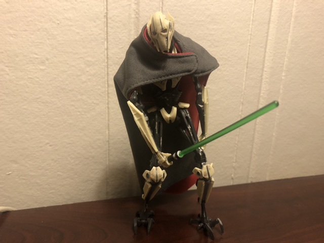 Grievous was a unique character and brought a unique discussion of whether this was a fiction or non fiction idea. The character is cool and a main protagonist for Ben Kenobi. Over the years I have acquired a few figures and these are my three favorites. A 3-3/4 scale, 6 inch scale, and recently this 12 inch action figure. All are really cool and ready to battle the Jedi who he claimed many lightsabers by defeating them in battle.