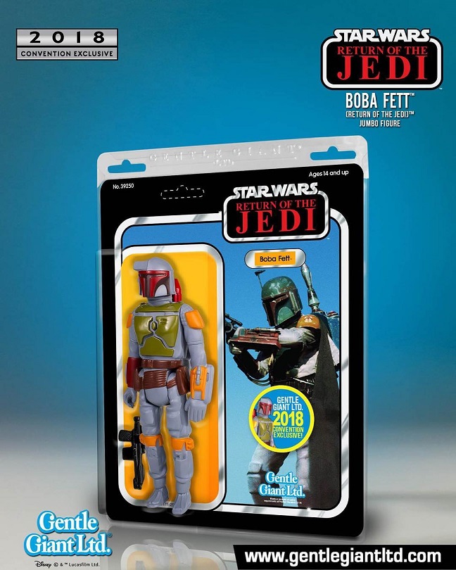 Gentle Giant has released photos and details for their nostalgic new Star Wars: Return of the Jedi – Jumbo Kenner Boba Fett Figure. The 12″ tall figure is priced at $80. It will be packaged on a resealable clamshell, with a vintage style card back. Check out the images below and let us know if you will be picking one up AFTER THE JUMP!
