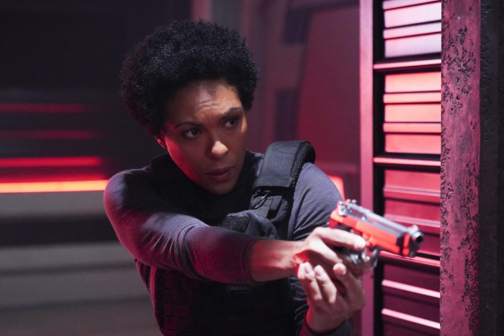 COLONEL HALEY IS DETERMINED TO FIND OUT SUPERGIRL’S IDENTITY — Colonel Haley (April Parker Jones) is upset after Supergirl (Melissa Benoist) responds to a distress call from a Navy ship that turned out to be a deadly alien attack. Colonel Haley reclaims the site as DEO territory and demands that Supergirl step aside. After Supergirl refuses to be told what to do, Haley refocuses her energy on finding out Supergirl’s true identity and begins to interrogate all DEO agents, including Alex (Chyler Leigh). Meanwhile, Brainiac-5 (Jesse Rath) tries to persuade Nia (Nicole Maines) to embrace her superpowers but she misinterprets his motives. Rachel Talalay directed the episode written by Maria Maggenti & Gabriel Llanas (#410). Original air date 1/20/19.