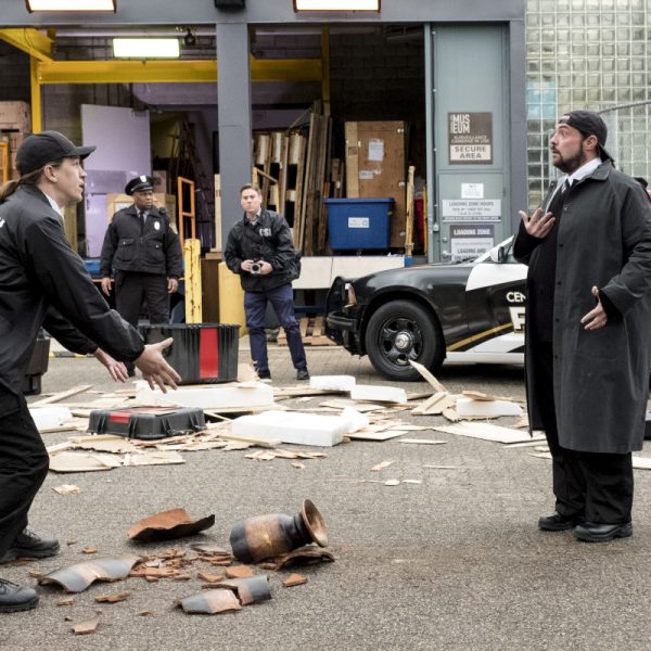 The Flash — “Null and Annoyed” — Image Number: FLA417c_0141b.jpg — Pictured (L-R): Kevin Smith as Bob the Security Guard and Jason Mewes as Jay the Security Guard — Photo: Katie Yu/The CW — é 2018 The CW Network, LLC. All rights reserved