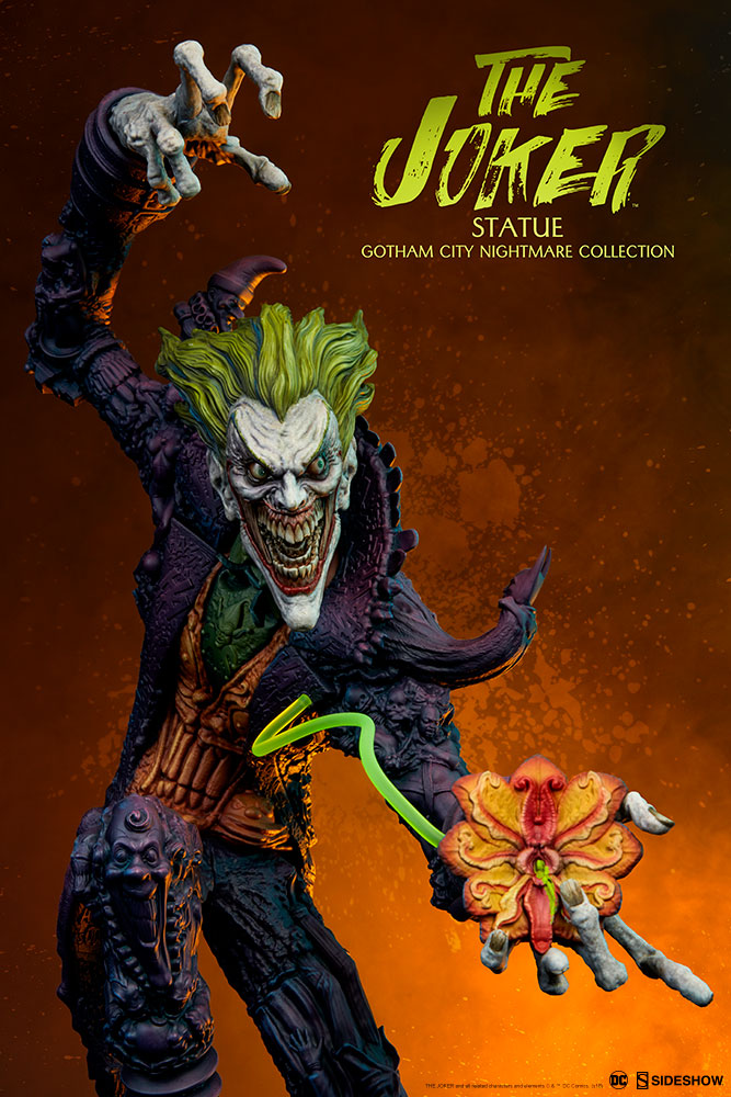 Sideshow is thrilled to present The Joker Statue, the next twisted face in the Gotham City Nightmare collection, which dares to ask, what would the familiar faces of Gotham become when viewed through eyes filled with fear?