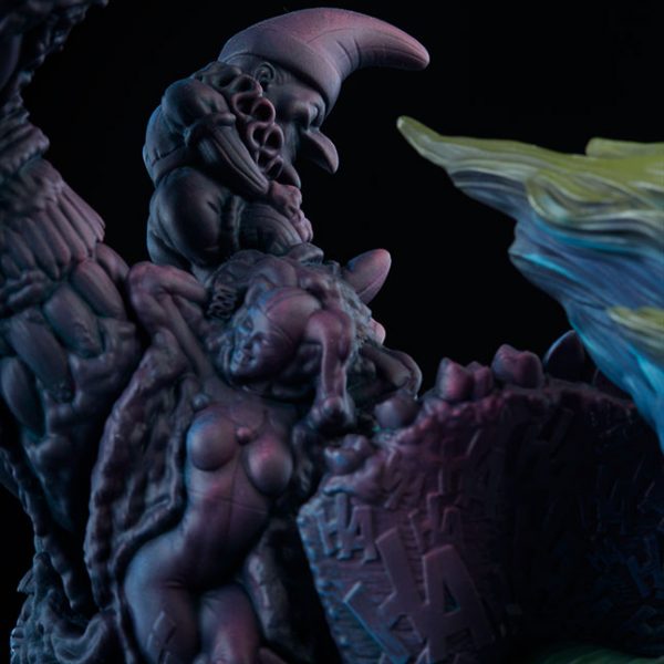“We took the insanity of The Joker and made his entire makeup a tableau of bas-relief Easter eggs of his entire existence,” Creative Director Tom Gilliland explained.