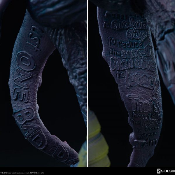 “All it takes is one bad day” to make The Joker Statue your most frightening nightmare yet! This intricate statue is bursting with brilliant details revealing just what makes The Joker who he is, sculpted in polystone with vinyl and PVC elements. From Ace Chemicals to the famed Arkham Asylum as his backbone, The Joker Statue will keep you captivated by the horror as you search for references to the some of the villain’s most infamous moments.