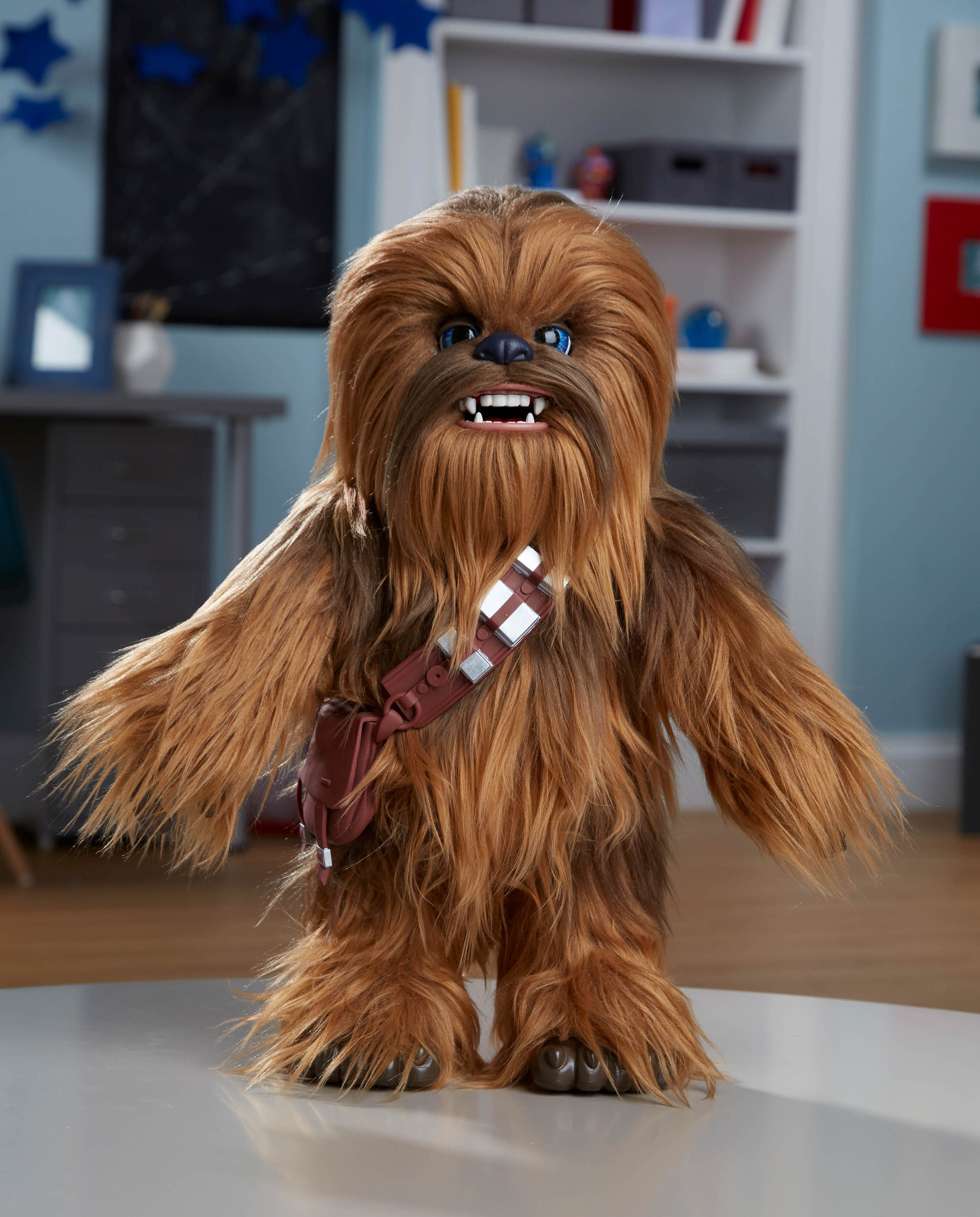(Ages 4 years & up/Approx. Retail Price: $129.99/Available: Fall 2018) Kids can imagine taking on the galaxy with their very own Wookiee sidekick! The STAR WARS ULTIMATE CO-PILOT CHEWIE stands 16 inches tall and features more than 100 sound and motion combinations. With signature Wookiee-talk back interaction, the ULTIMATE CO-PILOT CHEWIE responds to external movements and sounds. Make a noise and the ULTIMATE CO-PILOT CHEWIE will roar back! Fans can enjoy everything from naptime to pretending to fly with their Wookiee sidekick. The ULTIMATE CO-PILOT CHEWIE features poseable legs and can respond with a variety of facial expressions for fun surprises. Includes iconic bandolier and satchel. Requires 4 AA batteries, not included. Available at most major retailers.