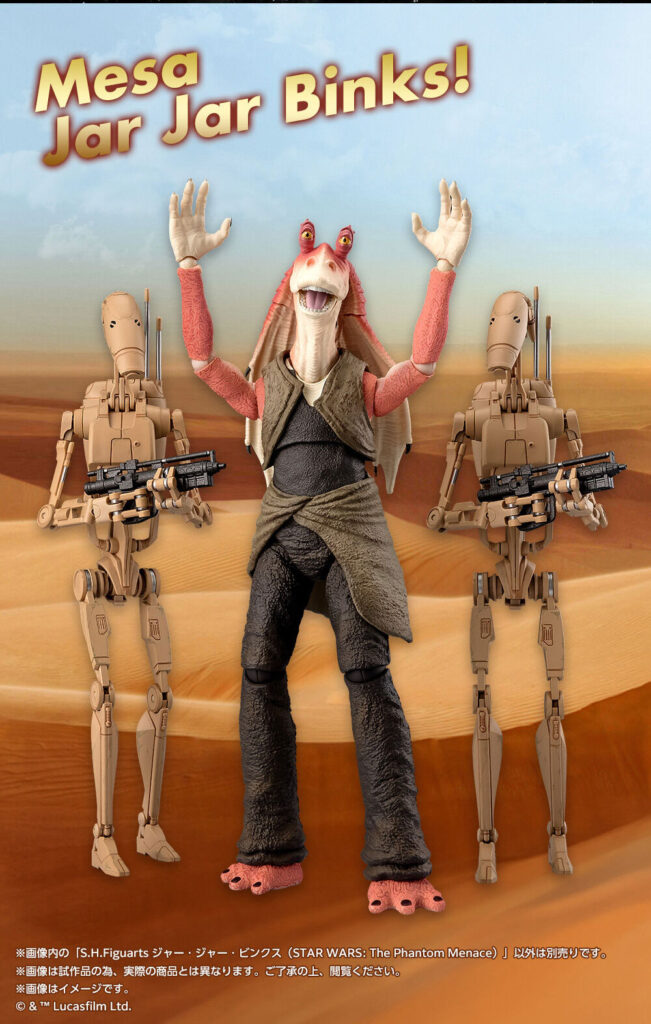 To commemorate the 25th anniversary of “Star Wars Episode 1: The Phantom Menace,” “Jar Jar Binks” is finally available at SHFiguarts. By using the replacement head and jaw parts, you can fully enjoy the poses typical of Jar Jar Binks.