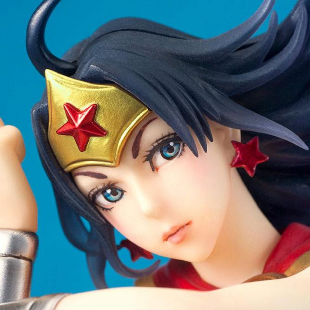 Wonder Woman returns to the Kotobukiya’s popular line of bishoujo statues! This Wonder Woman Armored Version Bishoujo Statue features the beautiful Amazonian Princess looking as stunning as ever, caught mid-action deflecting attacks with her bracelets. Wonder Woman’s strength and confidence come through in this sensational statue, and the highly detailed sculpt shows all of Wonder Woman’s armor details, along with the folds and pleats in her skirt and cape as they flow in the unseen breeze. She even comes with an interchangeable knife! Measures nearly 9 1/2-inches tall. Ages 14 and up.