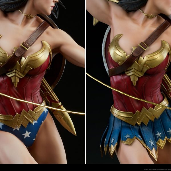 The Exclusive edition of the Wonder Woman Premium Format™ Figure includes a removable polyvinyl skirt for Diana’s costume, allowing an additional display option for the figure.